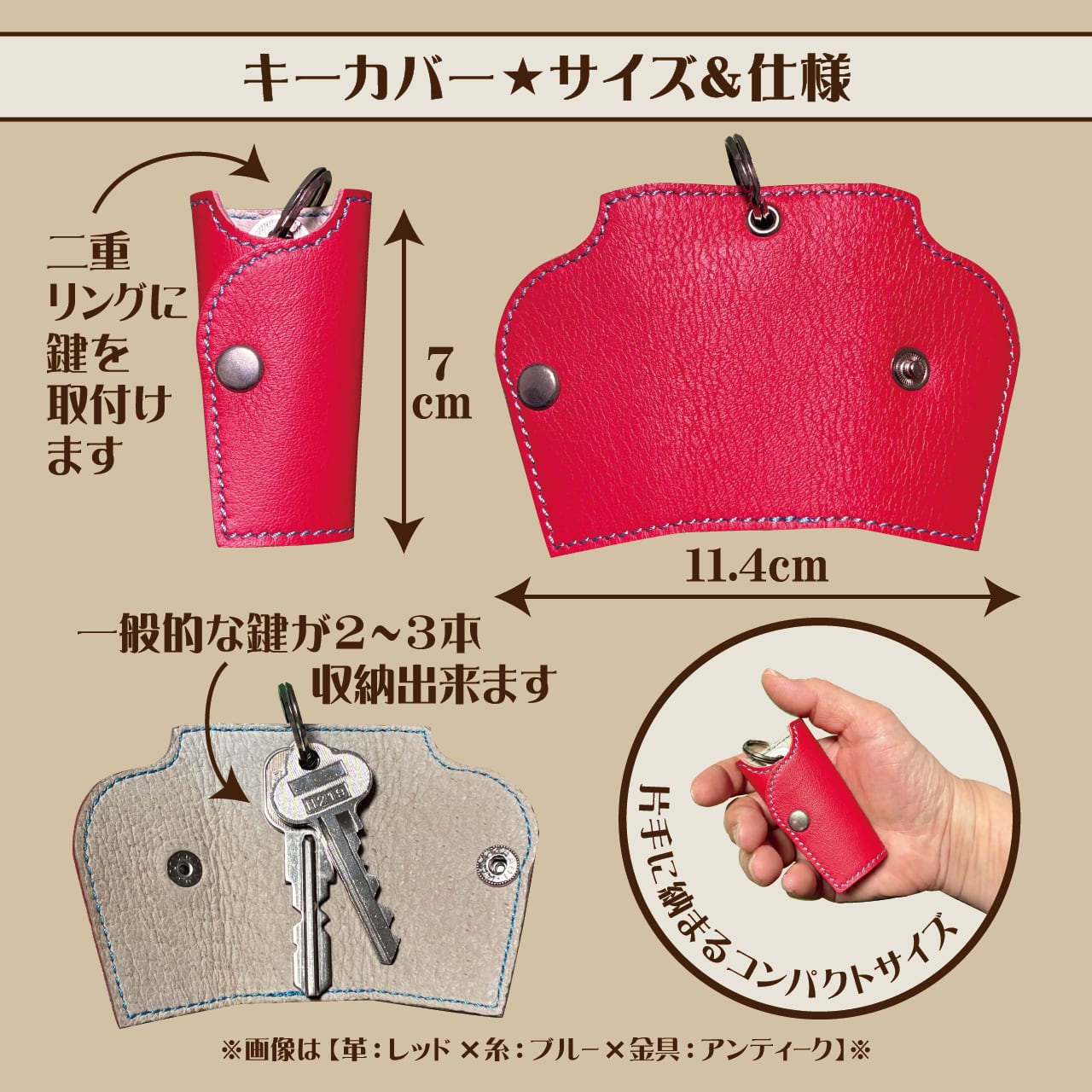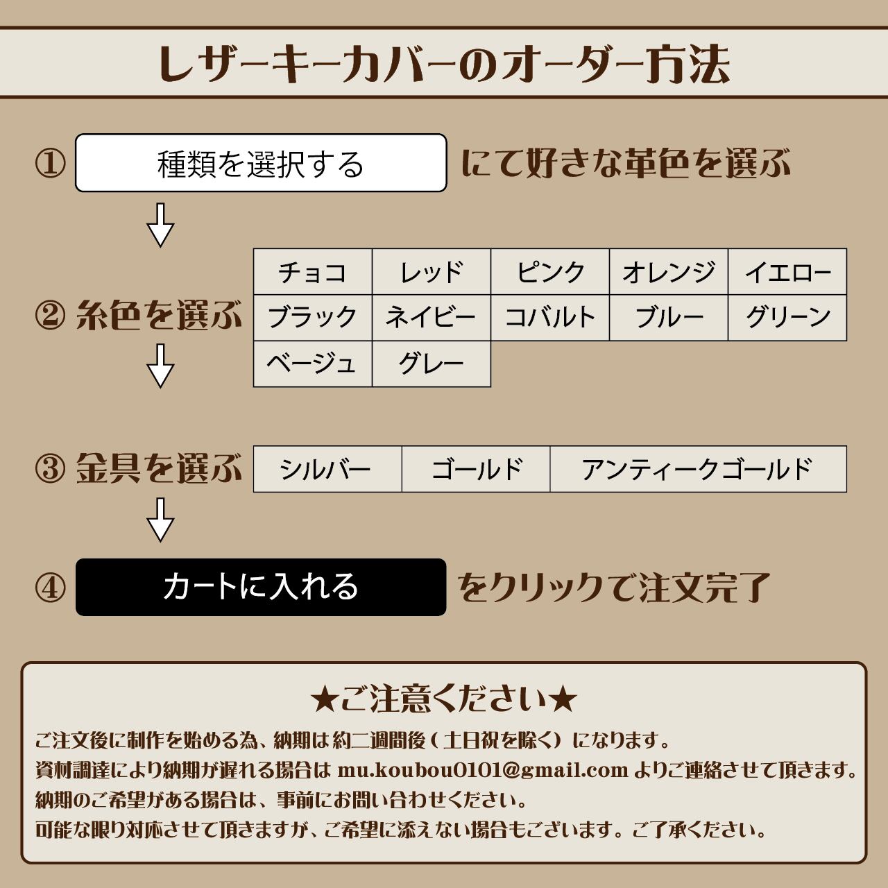 詳細に関しましては『レザーキーカバーのオーダー方法』の画像をご確認ください。
